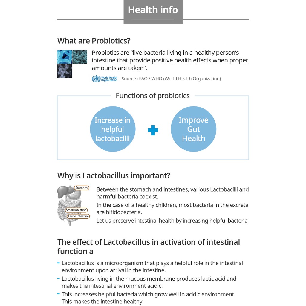 Ordered on 28/6, received on 5/7. First purchase from this seller. Regular purchases for this product. 12 types of mixed Lactobacilli make your stomach happy, increase helpful Lactobacilli, restrains growth of harmful bacteria and helps with bowel movements. Can take on its own or mixed it with water. Slight orange flavour. Have been taking this for many years.